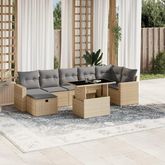 Salon de jardin avec coussins 8 pcs beige resine tressee