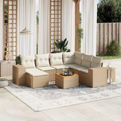Salon de jardin avec coussins 8 pcs beige resine tressee