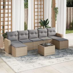 Salon de jardin avec coussins 8 pcs beige resine tressee