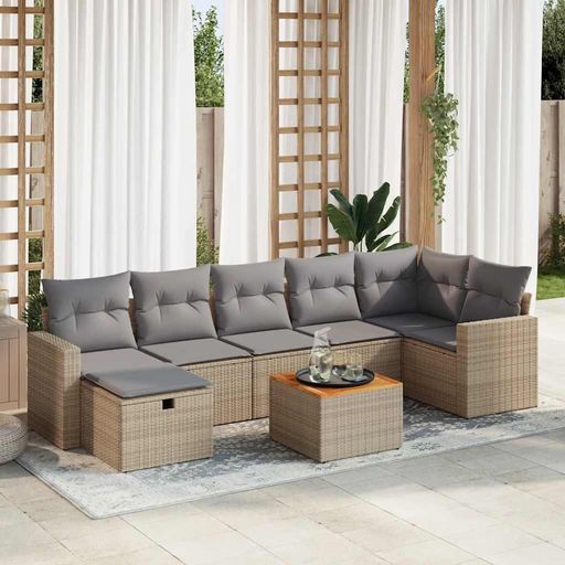 Salon de jardin avec coussins 8 pcs beige resine tressee