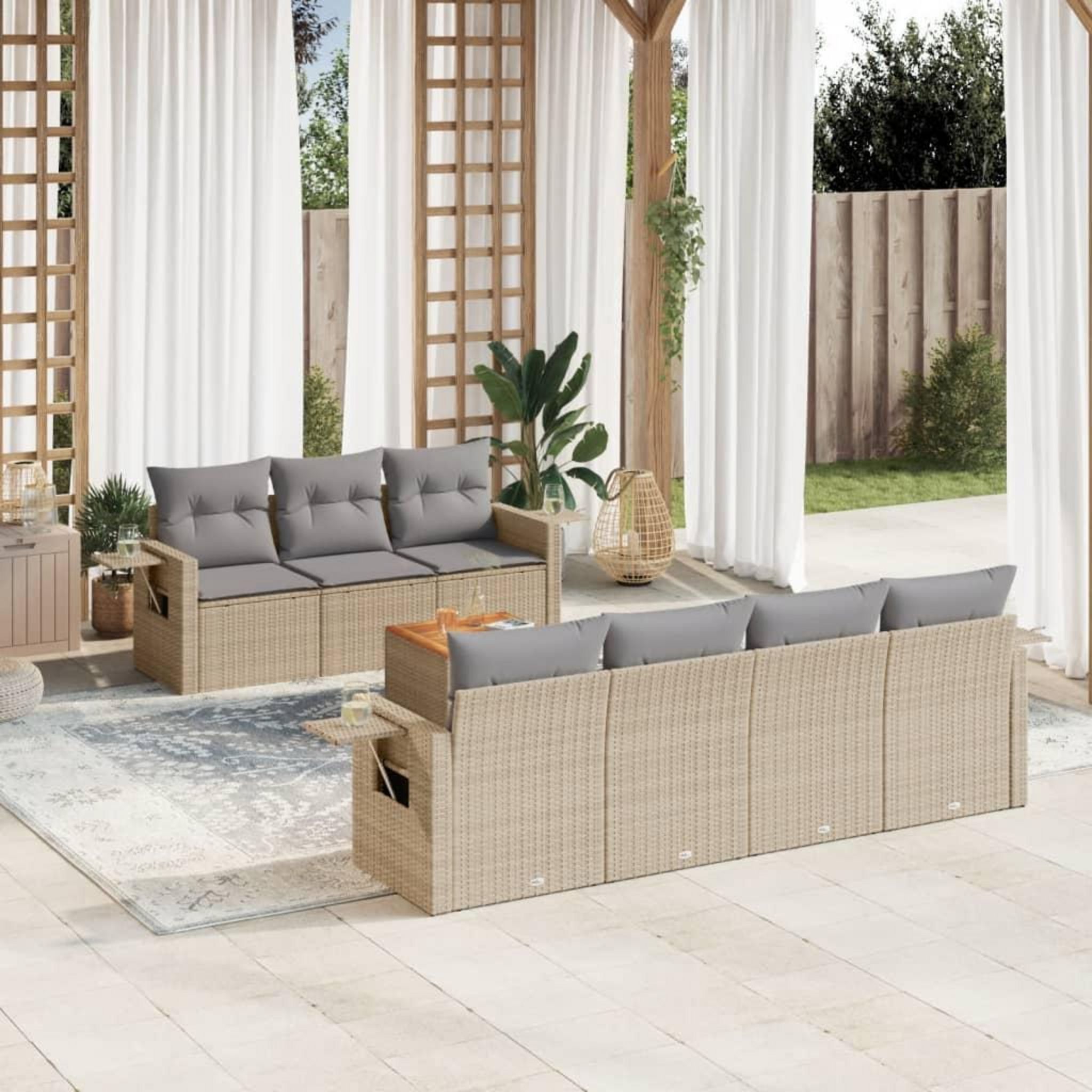 Salon de jardin avec coussins 8 pcs beige resine tressee