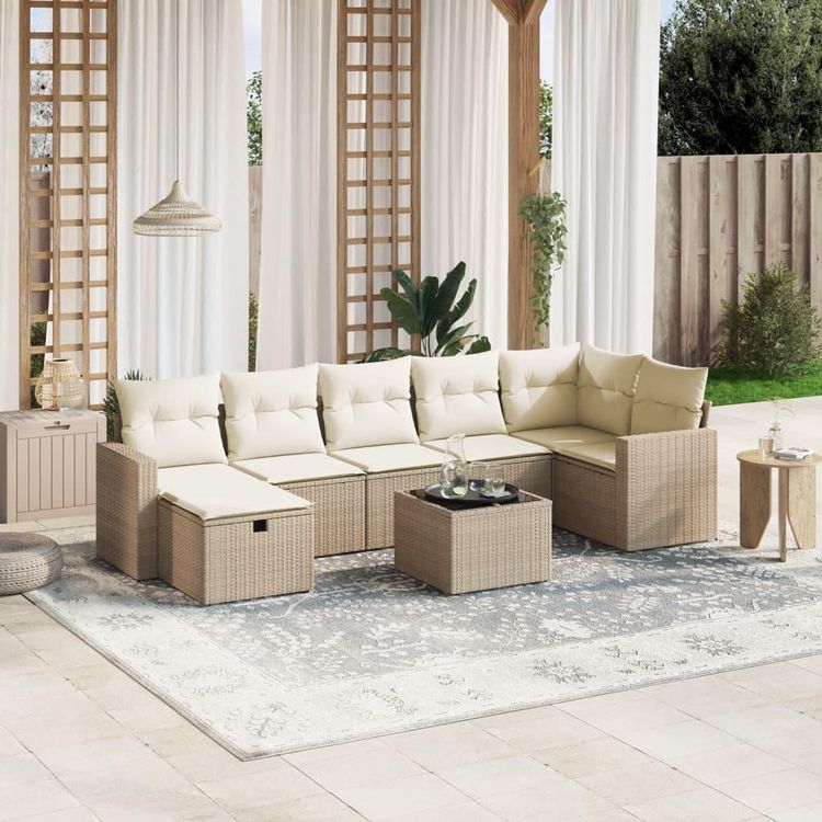 Salon de jardin avec coussins 8 pcs beige resine tressee