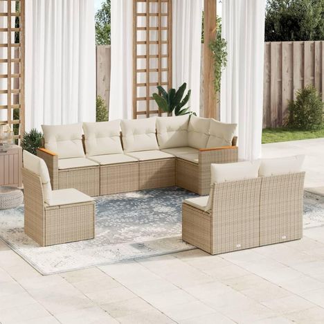 Salon de jardin avec coussins 8 pcs beige resine tressee