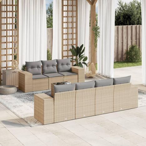 Salon de jardin avec coussins 8 pcs beige resine tressee