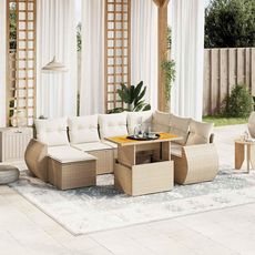 Salon de jardin avec coussins 8 pcs beige resine tressee