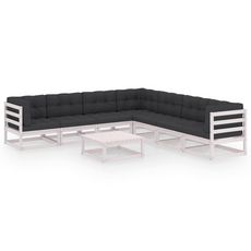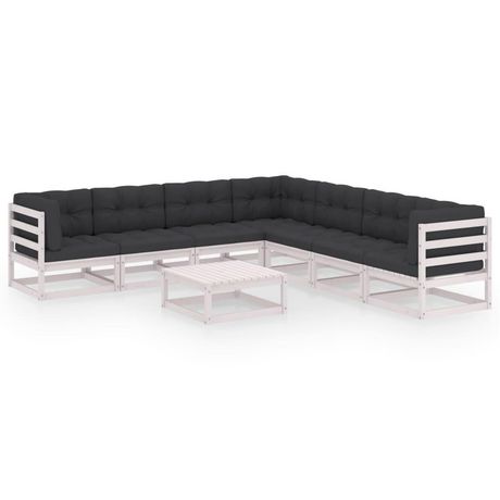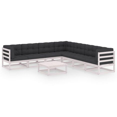 Salon de jardin avec coussins 8 pcs blanc bois de pin massif