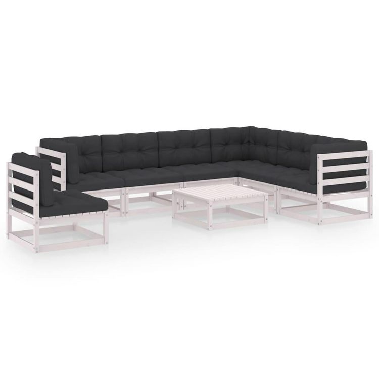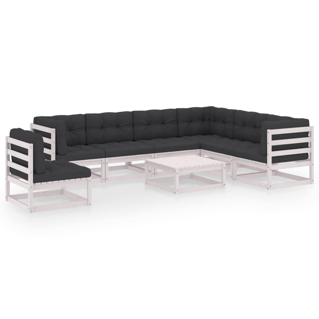 Salon de jardin avec coussins 8 pcs blanc bois de pin massif