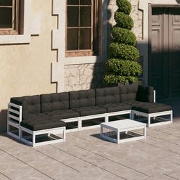 Salon de jardin avec coussins 8 pcs blanc bois de pin massif