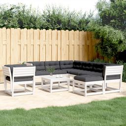 Salon de jardin avec coussins 8 pcs blanc bois de pin massif