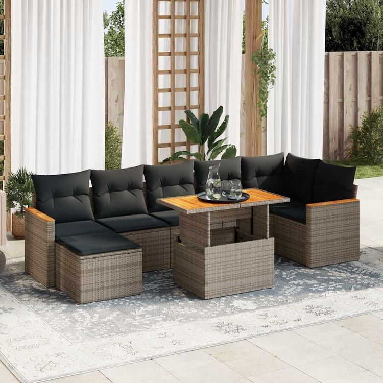 Salon de jardin avec coussins 8 pcs gris resine tressee acacia