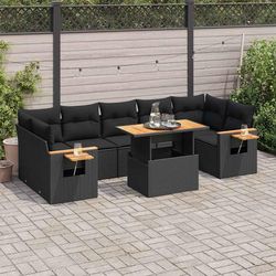 Salon de jardin avec coussins 8 pcs noir resine tressee acacia