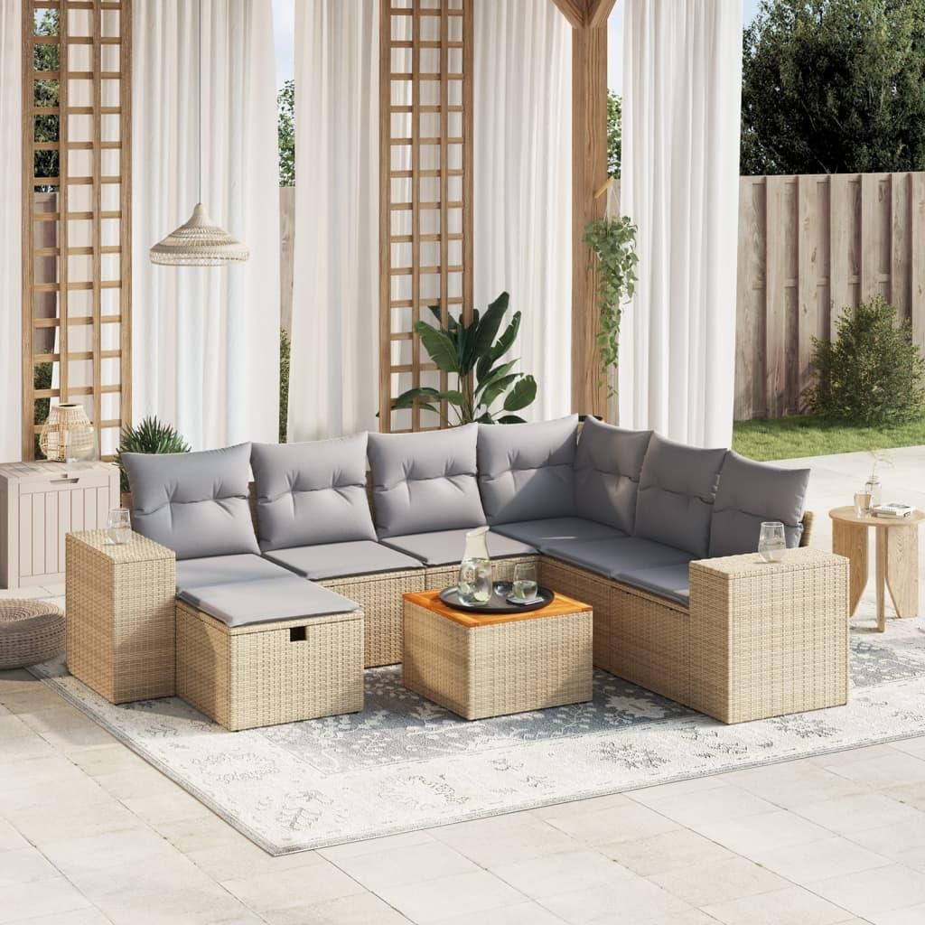 Salon de jardin avec coussins 8pcs melange beige resine tressee