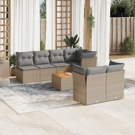 Salon de jardin avec coussins 8pcs melange beige resine tressee