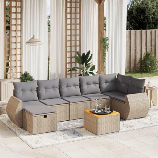 Salon de jardin avec coussins 8pcs melange beige resine tressee