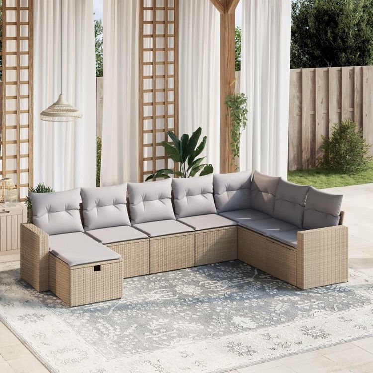 Salon de jardin avec coussins 8pcs melange beige resine tressee