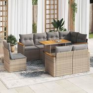Salon de jardin avec coussins 9 pcs beige resine tressee acacia