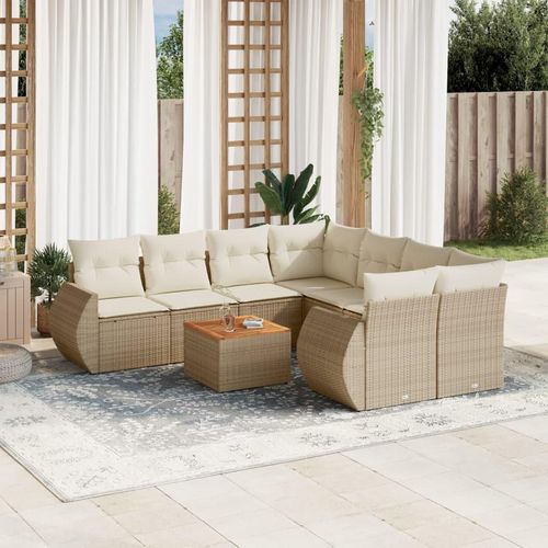 Salon de jardin avec coussins 9 pcs beige resine tressee