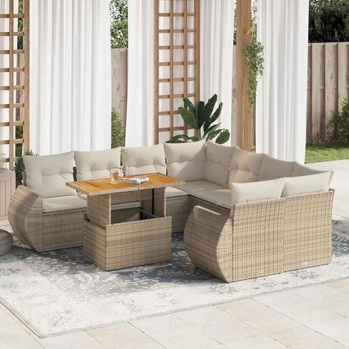 Salon de jardin avec coussins 9 pcs beige resine tressee