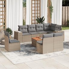 Salon de jardin avec coussins 9 pcs beige resine tressee