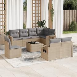 Salon de jardin avec coussins 9 pcs beige resine tressee