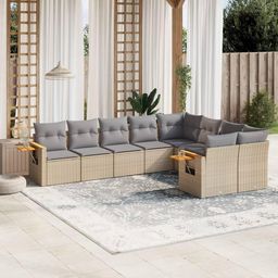 Salon de jardin avec coussins 9 pcs beige resine tressee