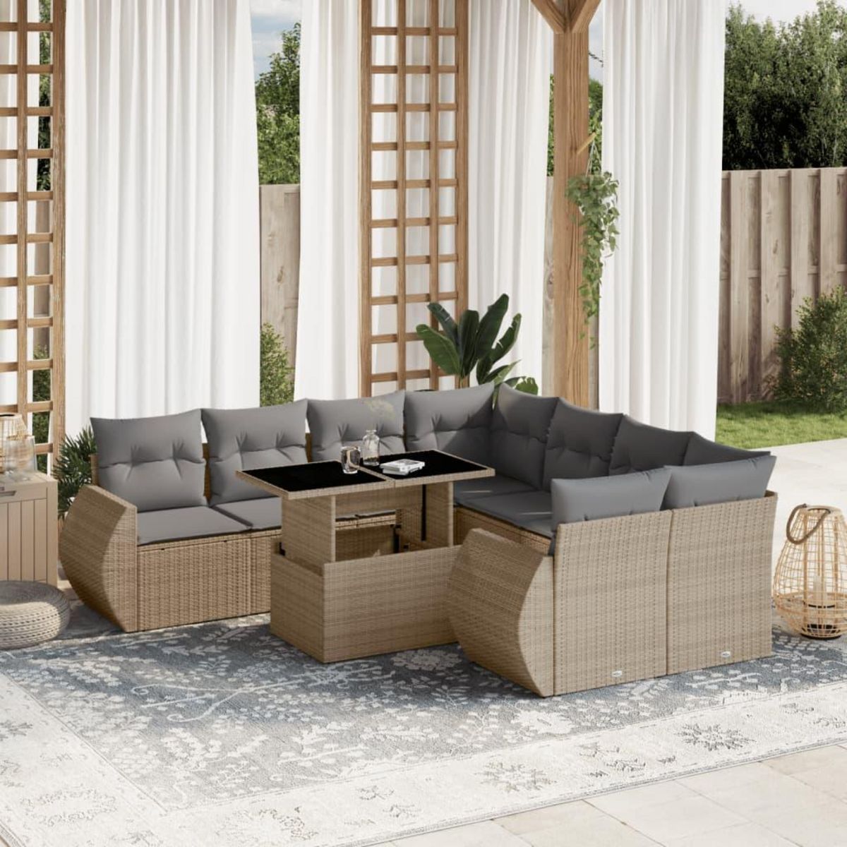 Salon de jardin avec coussins 9 pcs beige resine tressee