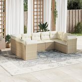 Salon de jardin avec coussins 9 pcs beige resine tressee