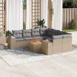 Salon de jardin avec coussins 9 pcs beige resine tressee