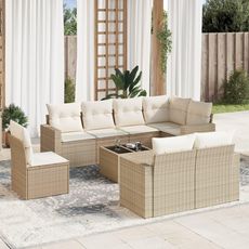 Salon de jardin avec coussins 9 pcs beige resine tressee