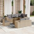 Salon de jardin avec coussins 9 pcs beige resine tressee