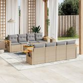 Salon de jardin avec coussins 9 pcs beige resine tressee