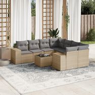 Salon de jardin avec coussins 9 pcs beige resine tressee