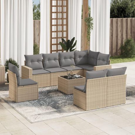 Salon de jardin avec coussins 9 pcs beige resine tressee