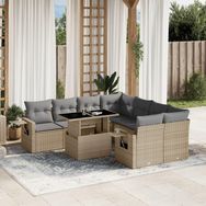 Salon de jardin avec coussins 9 pcs beige resine tressee