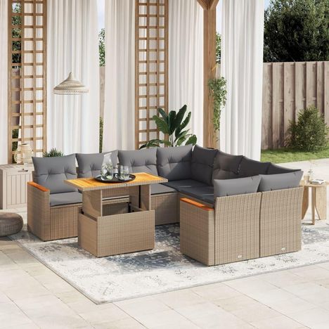 Salon de jardin avec coussins 9 pcs beige resine tressee