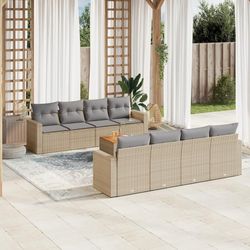 Salon de jardin avec coussins 9 pcs beige resine tressee