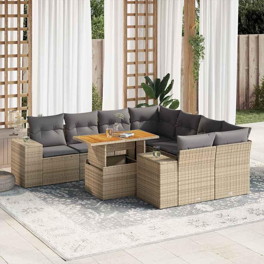 Salon de jardin avec coussins 9 pcs beige resine tressee
