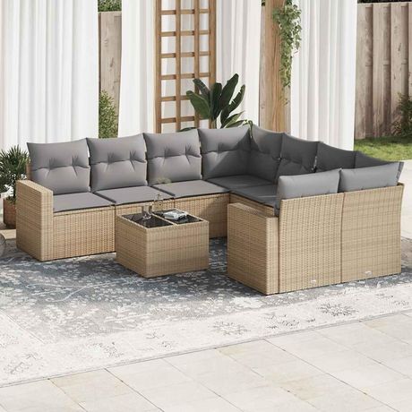 Salon de jardin avec coussins 9 pcs beige resine tressee