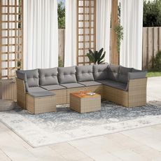 Salon de jardin avec coussins 9 pcs beige resine tressee