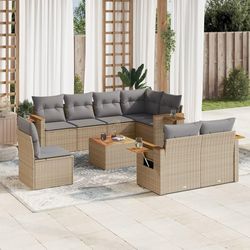 Salon de jardin avec coussins 9 pcs beige resine tressee