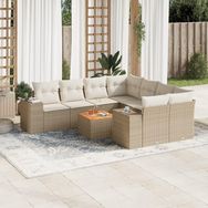 Salon de jardin avec coussins 9 pcs beige resine tressee