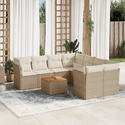 Salon de jardin avec coussins 9 pcs beige resine tressee