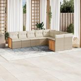Salon de jardin avec coussins 9 pcs beige resine tressee