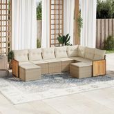 Salon de jardin avec coussins 9 pcs beige resine tressee