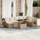 Salon de jardin avec coussins 9 pcs beige resine tressee