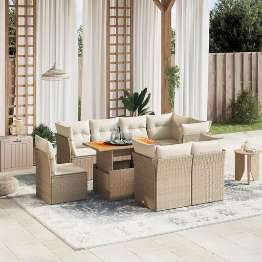 Salon de jardin avec coussins 9 pcs beige resine tressee