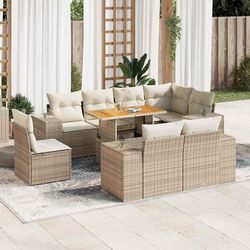 Salon de jardin avec coussins 9 pcs beige resine tressee