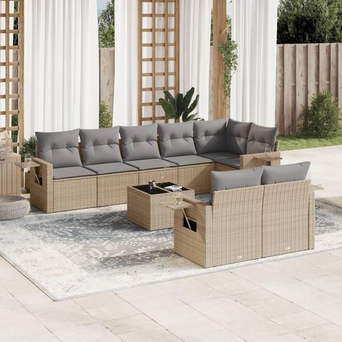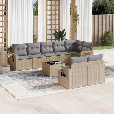 Salon de jardin avec coussins 9 pcs beige resine tressee