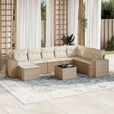 Salon de jardin avec coussins 9 pcs beige resine tressee