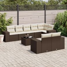 Salon de jardin avec coussins 9 pcs marron resine tressee